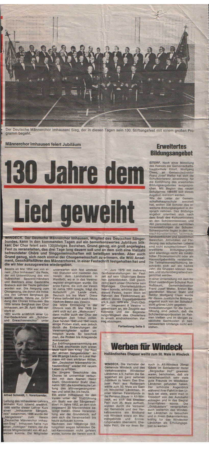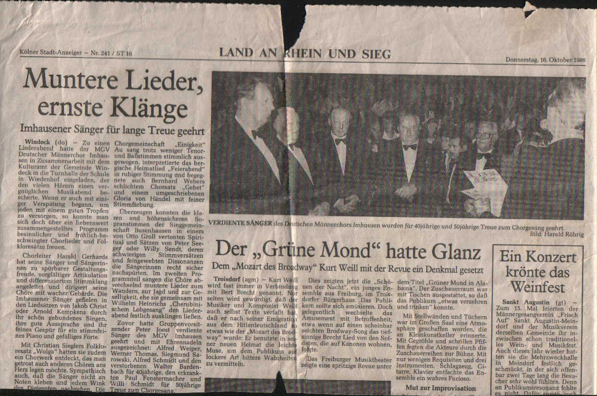 • Zur GESCHICHTE DES MGV ,,Deutscher Männerchor“ IMHAUSEN