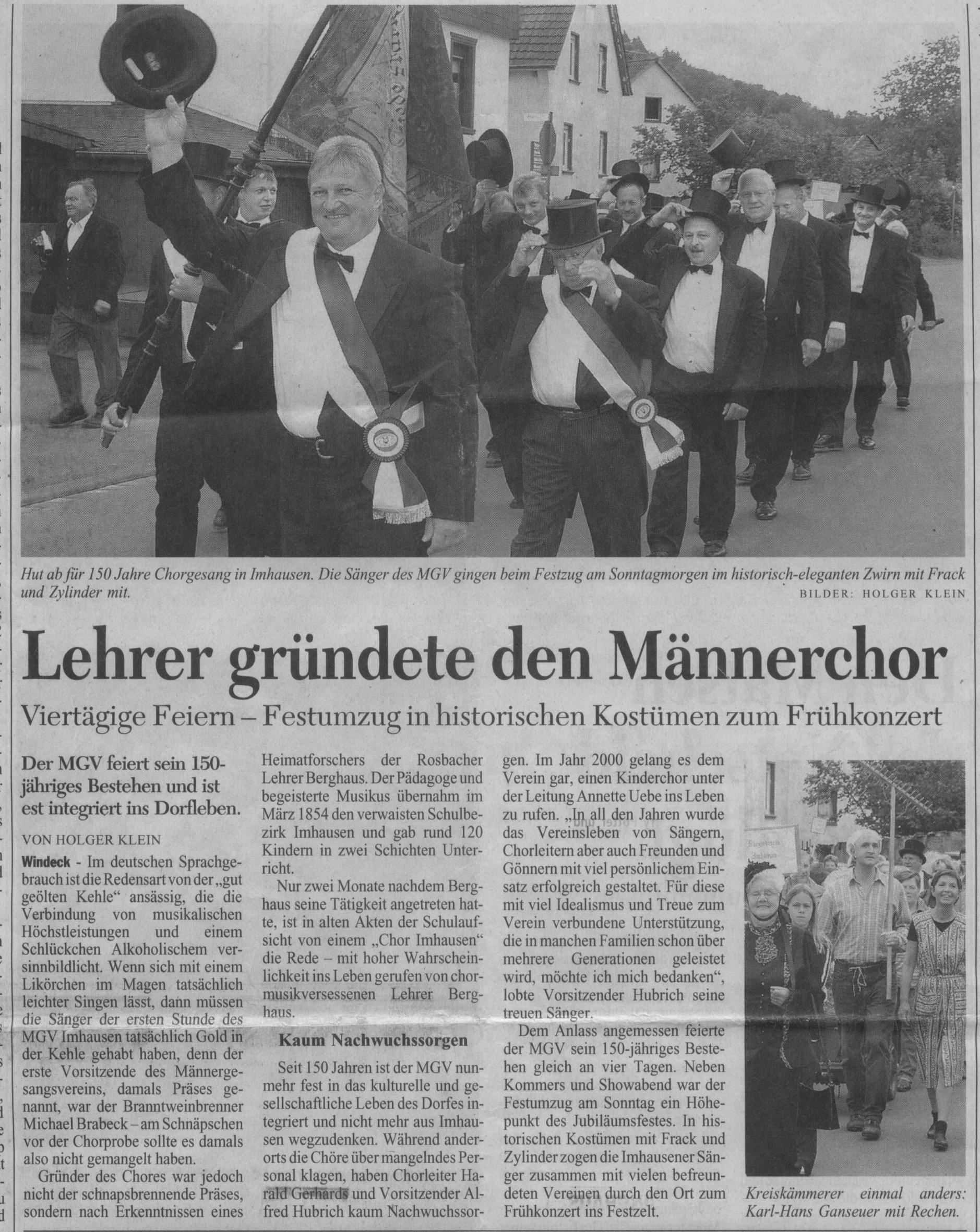• Gründung des MGV gem. Festbuch 2004